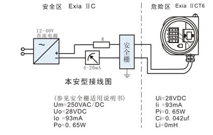 本安參數(shù):Ui:28VDC,Ii:93mA,Pi:0.65W,Ci:0.042uf,